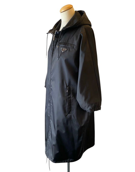 PRADA Re-Nylon Hooded Parka Coat Black Size 38
