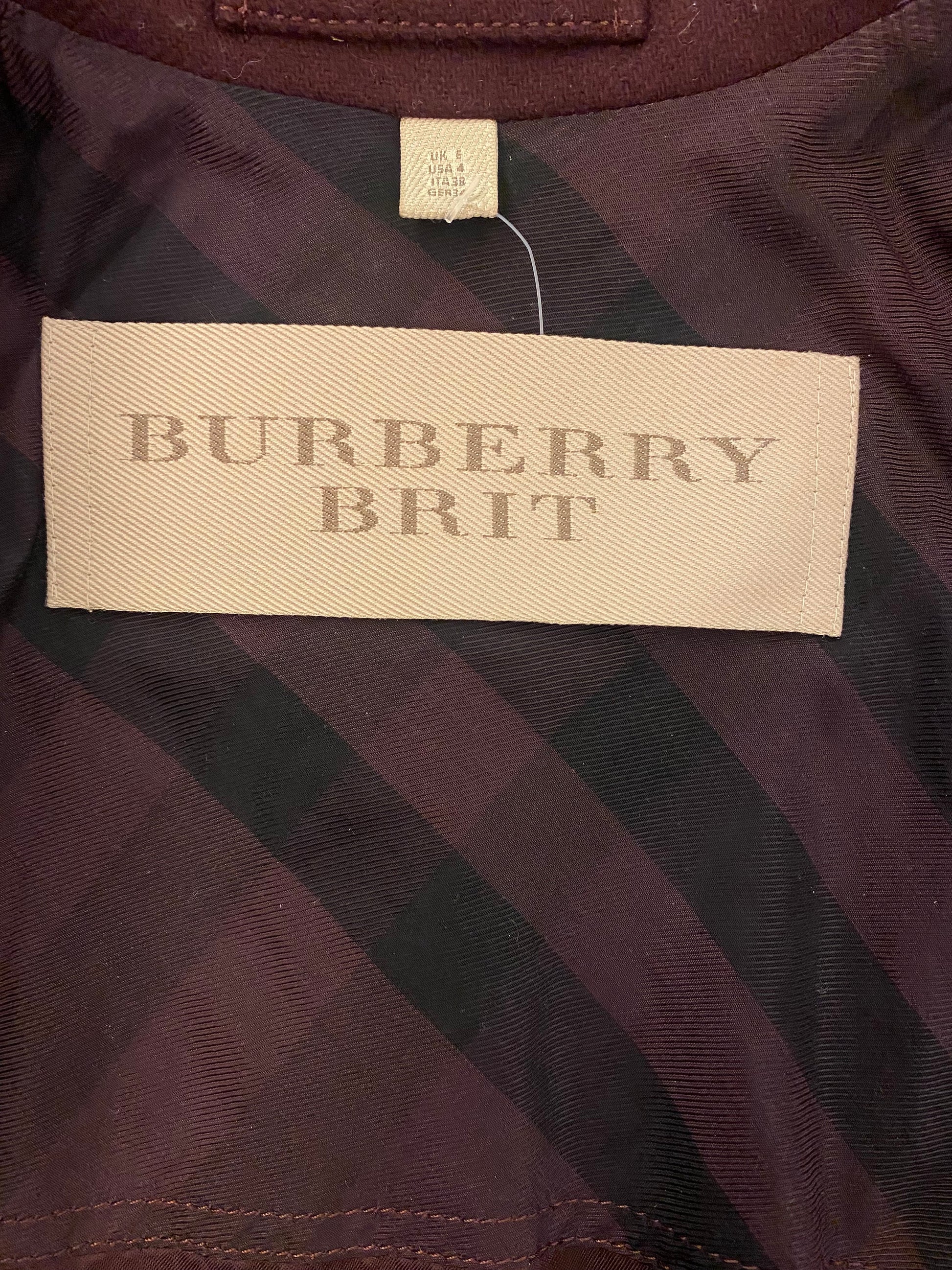 BURBERRY BRIT Burgundy Virgin Wool Blend Single Breasted Coat
