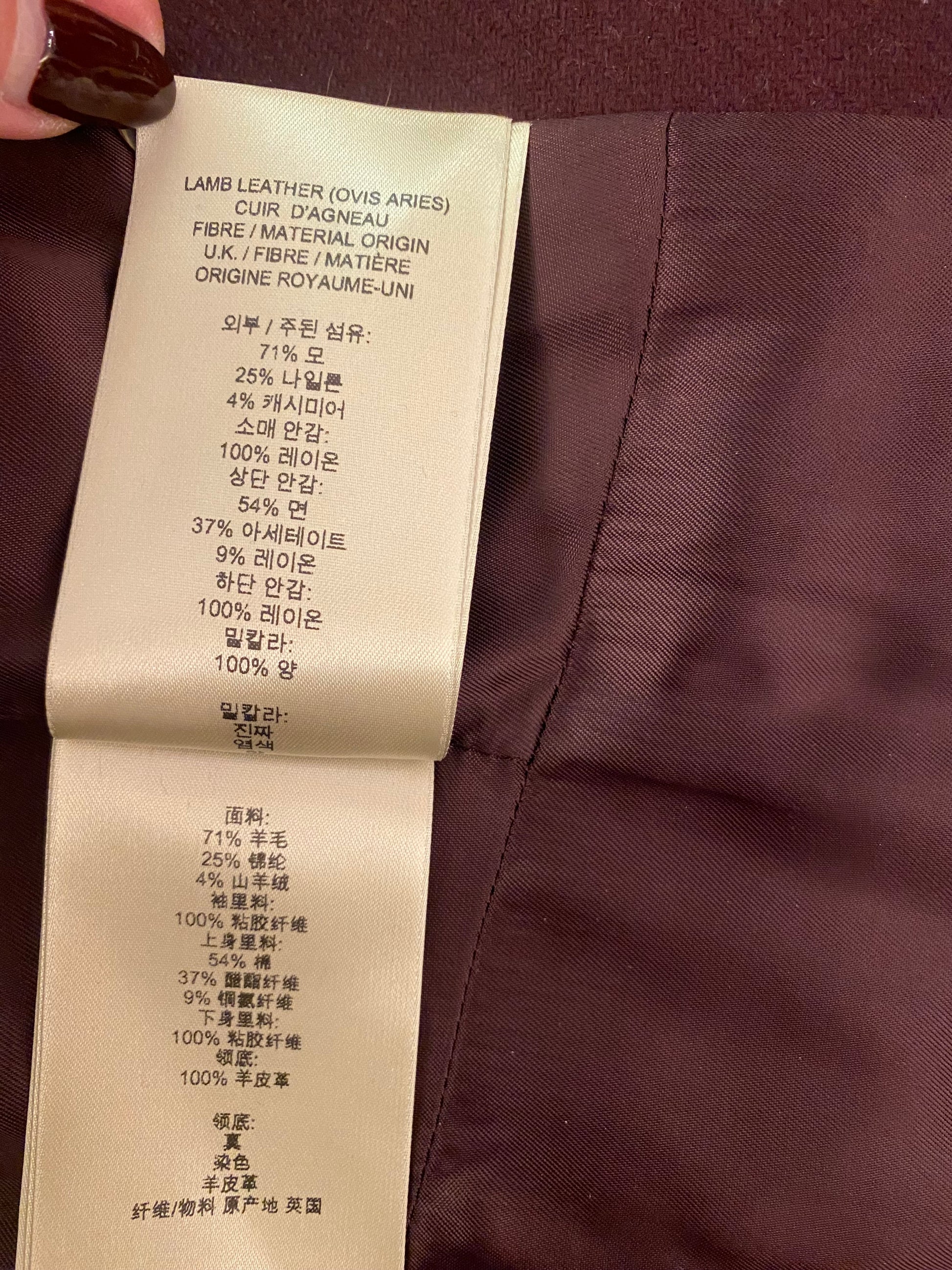 BURBERRY Burgundy Blend Wool Coat Size 34
