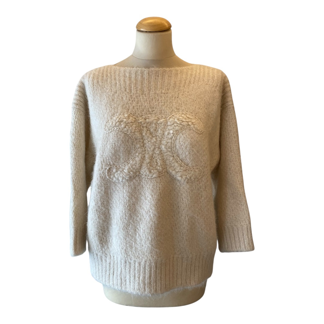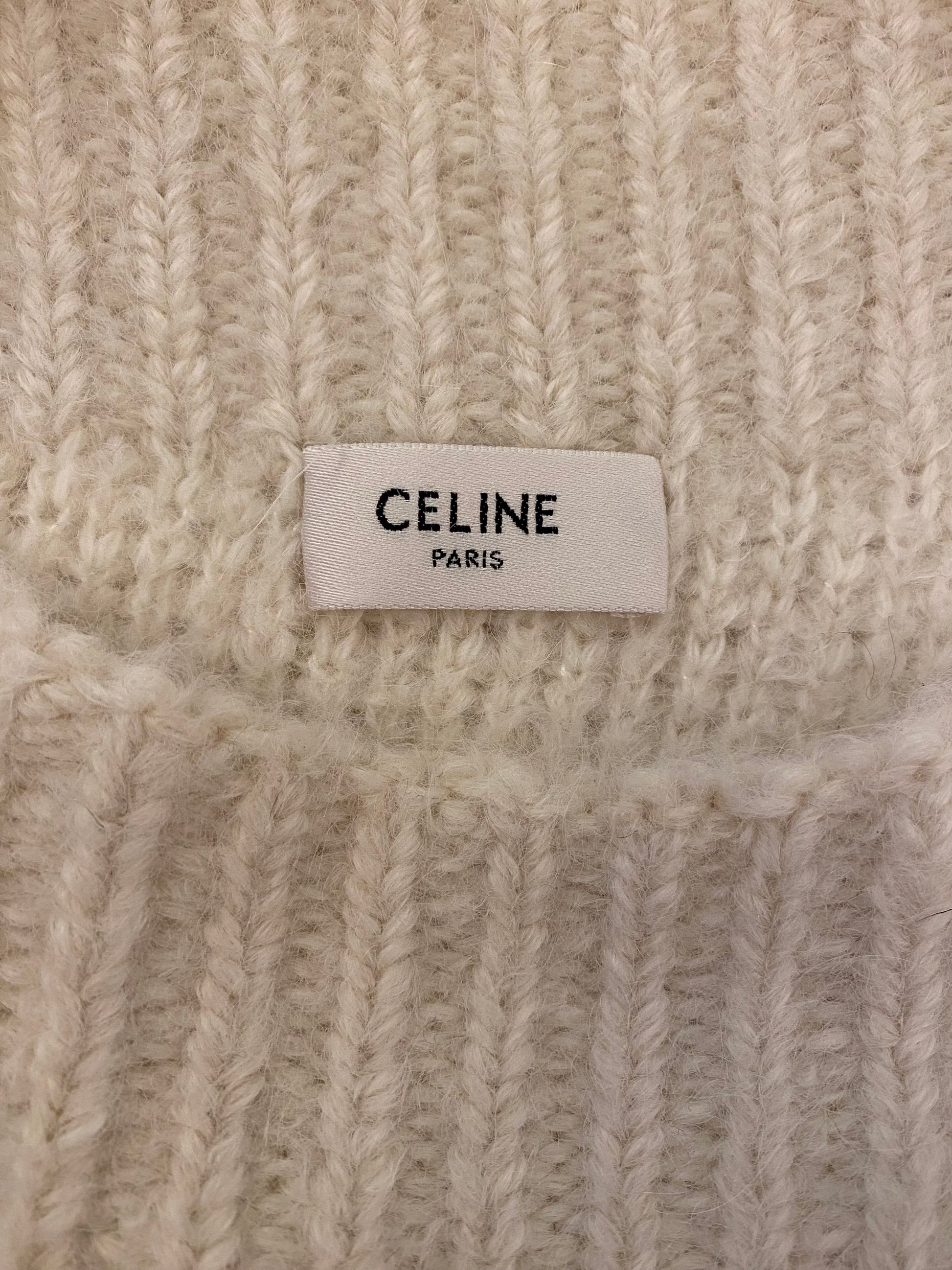 CELINE Boat neck sweater with Triomphe embroidered in bouclé wool and alpaca