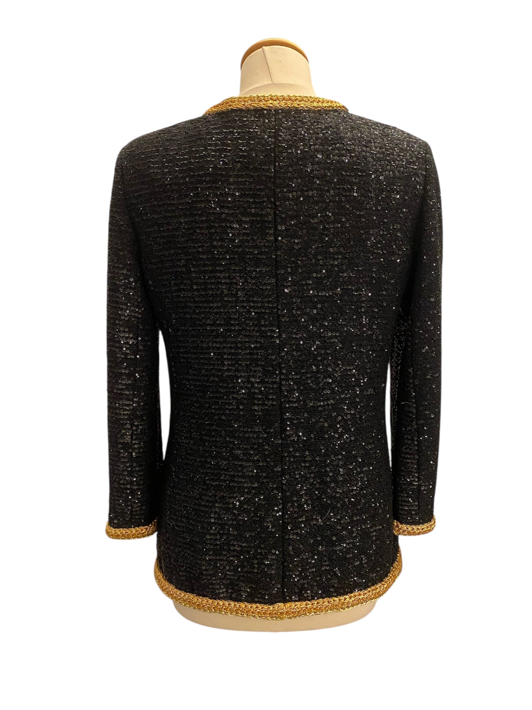 CHANEL Black and Gold Sequin Jacket Size Fr 36