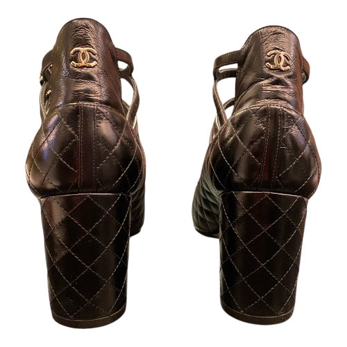 CHANEL Leather Mary Jane Heels Black Size 40 C