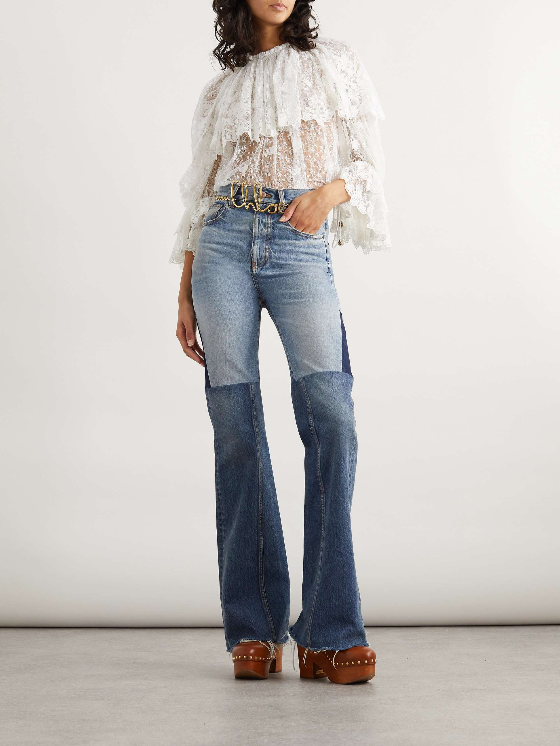 For Chloé's Fall '24 collection, Creative Director Chemena Kamali draws inspiration from the label's bohemian archives - specifically the '70s, when Karl Lagerfeld was at the helm. This blouse is cut from pretty corded lace with floral motifs throughout and has a ruffled overlay and cuffs. Underpin the sheer finish with a tonal cami or bralette.