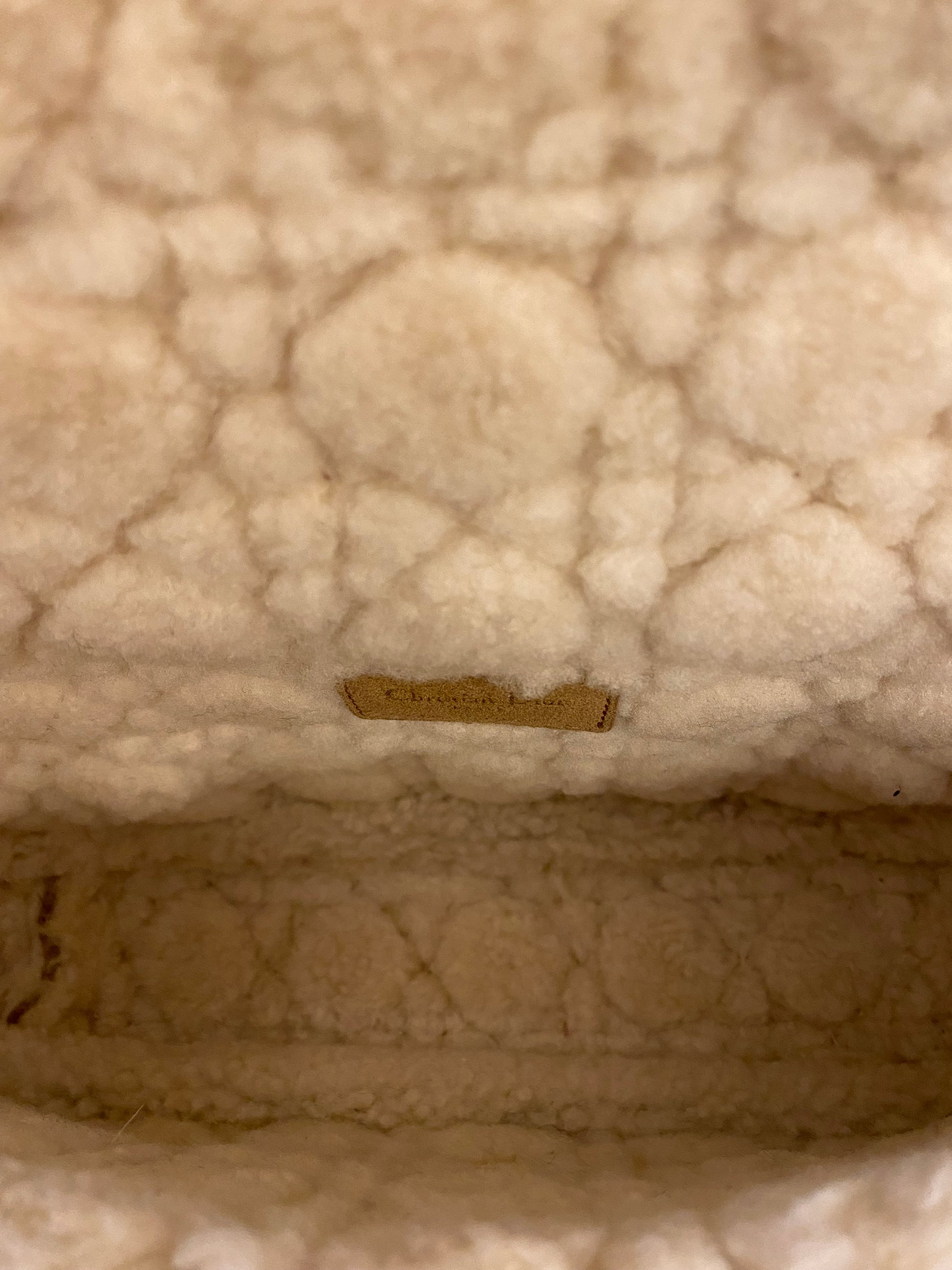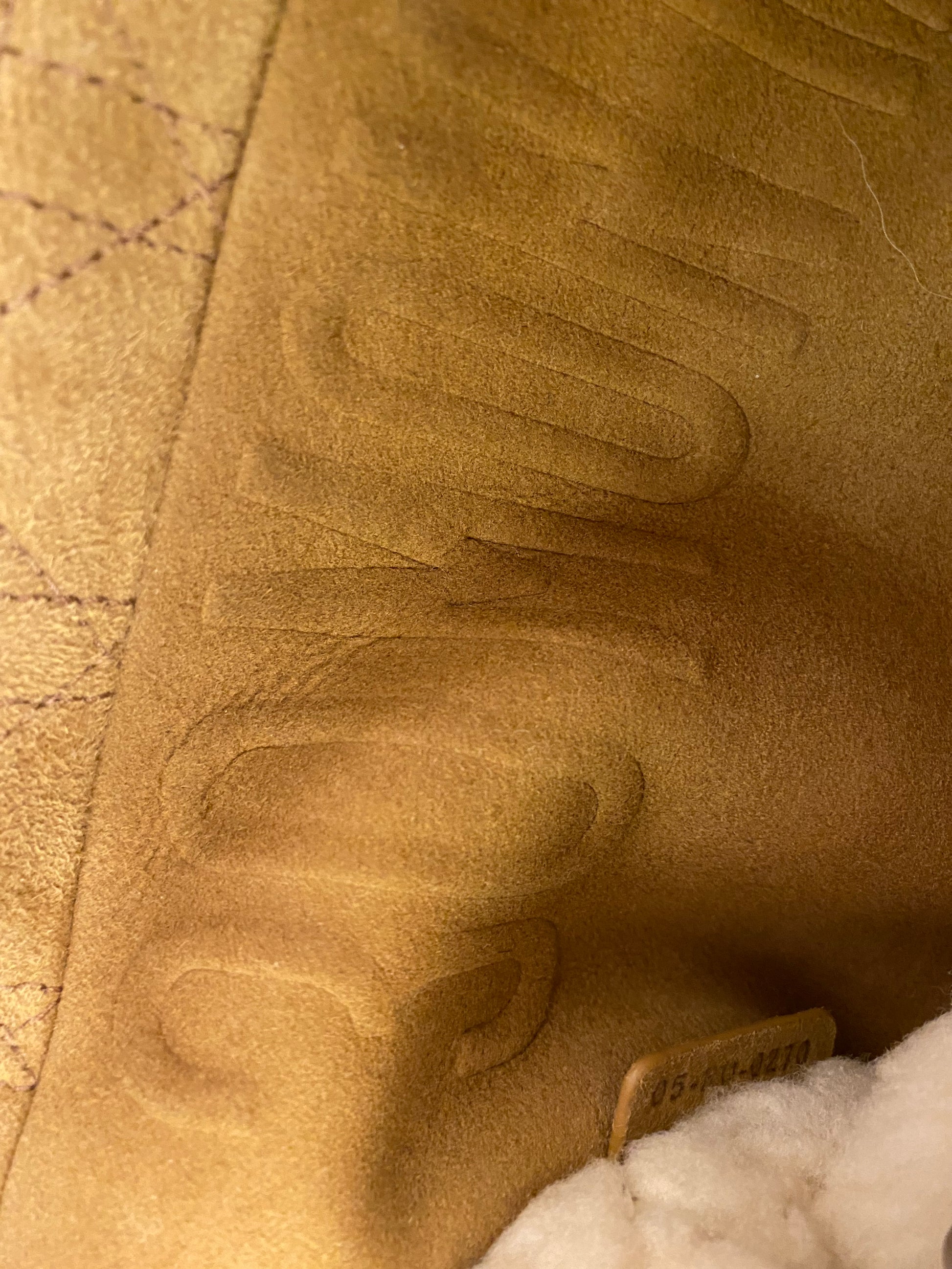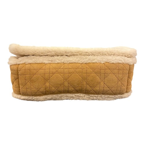 This is an authentic CHRISTIAN DIOR Sheepskin Wool Cannage Large Caro Bag in Camel. The bag is sheepskin wool in camel. The bag features a beige suede leather strap and polished gold hardware. The flap opens to a lovely white fabric interior.