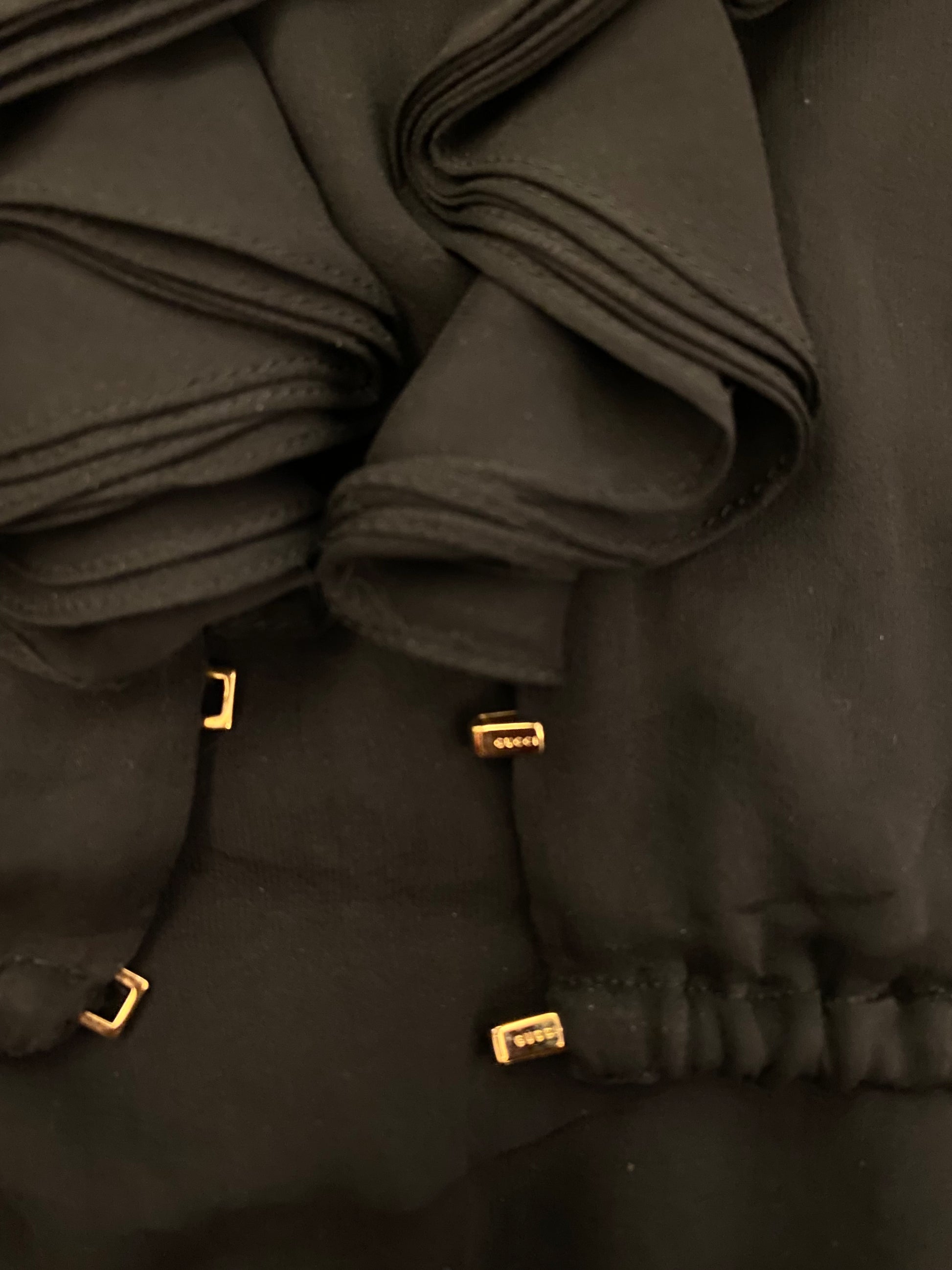 GUCCI Tom Ford Silk Black Ruffle Trim Plunge Neck Blouse