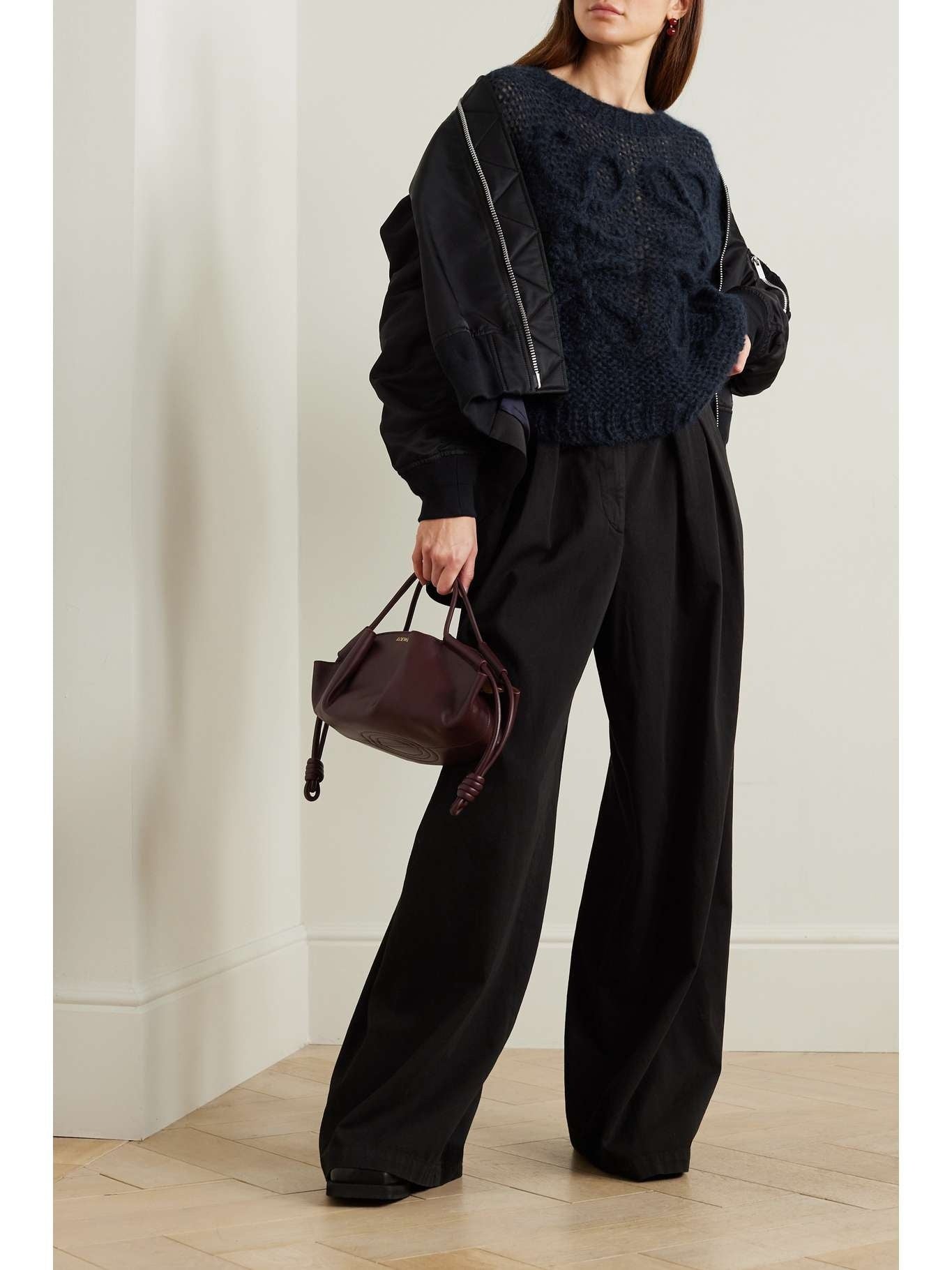 Sweater in medium-weight mohair blend featuring a hand-finished Anagram appliqué at the front and balloon sleeves with cable details.