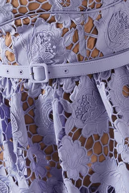 This midi dress from Self Portrait reflects the British label's refined and romantic feminine aesthetic. It is dreamt up in intricate floral lace and expertly tailored with a fitted bodice and waist-defining belt above a flouncy ruffle-tiered skirt.