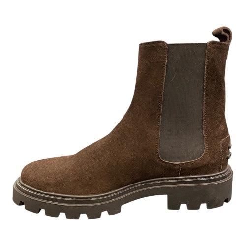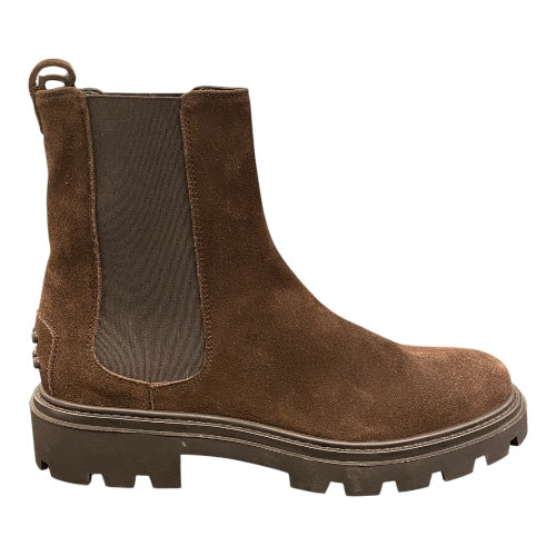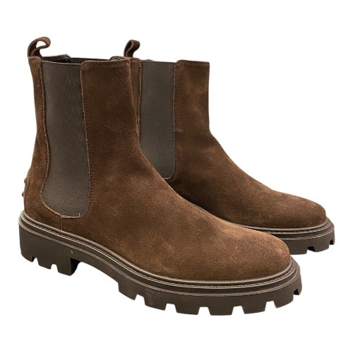 Ankle boots crafted in calfskin suede with side elastic inserts. Characterized by rubber pebbles on the heel and stamped Tod's monogram, they feature a rubber outsole with embossed rubber pebbles. A style that combines urban style trends and handcrafted detailing.