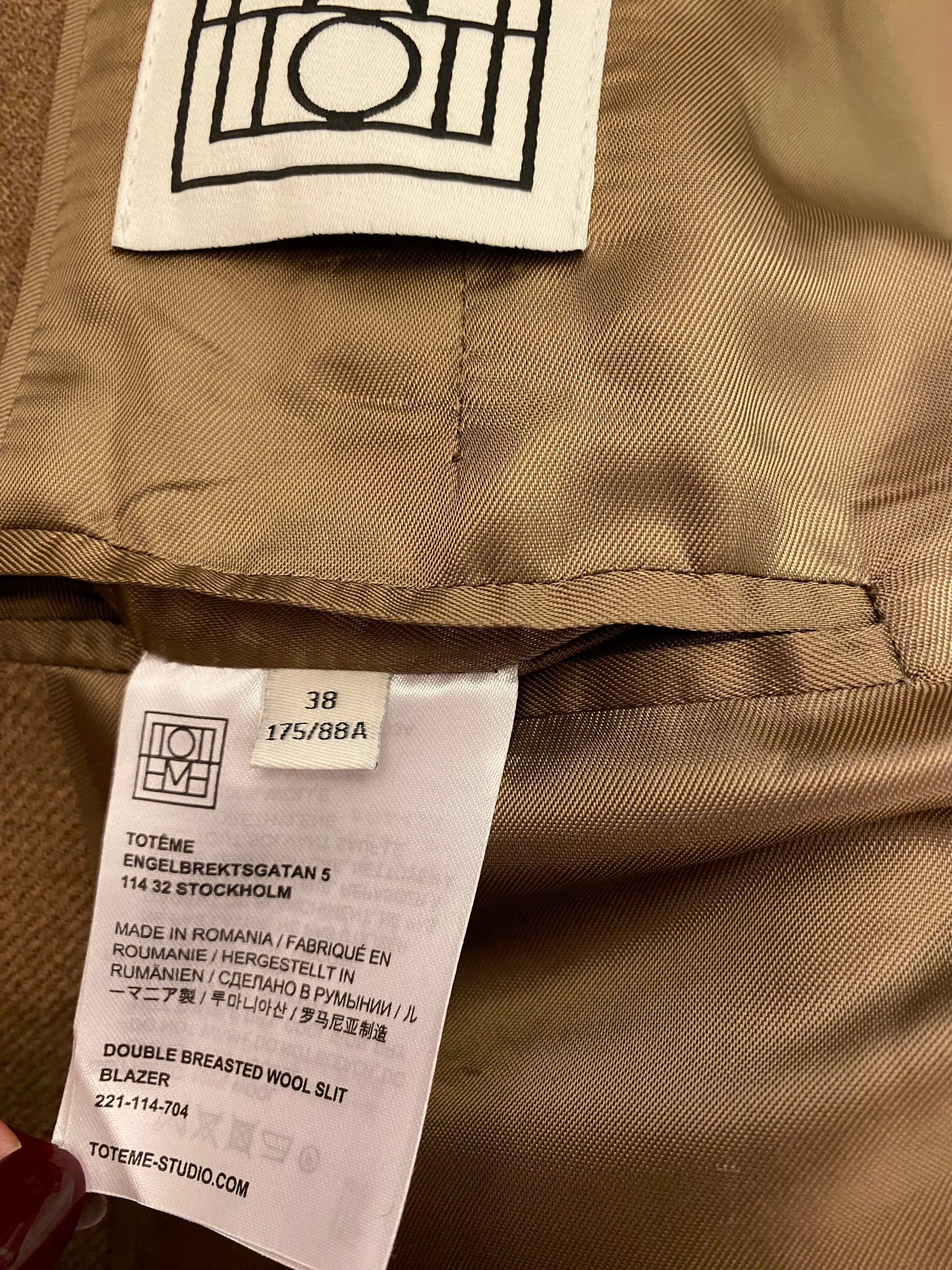 TOTEME Double Breasted Wool Slit Blazer Jacket in Hazel
