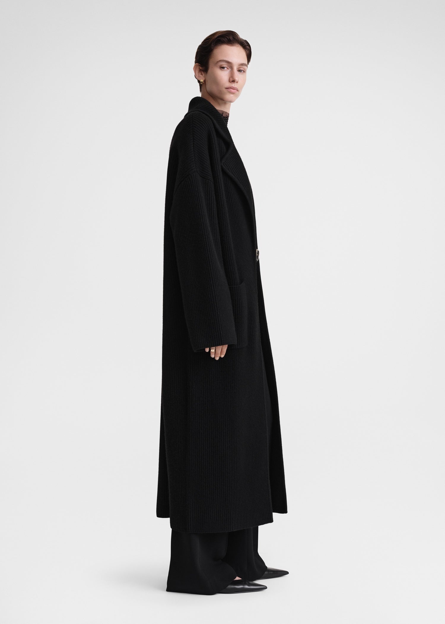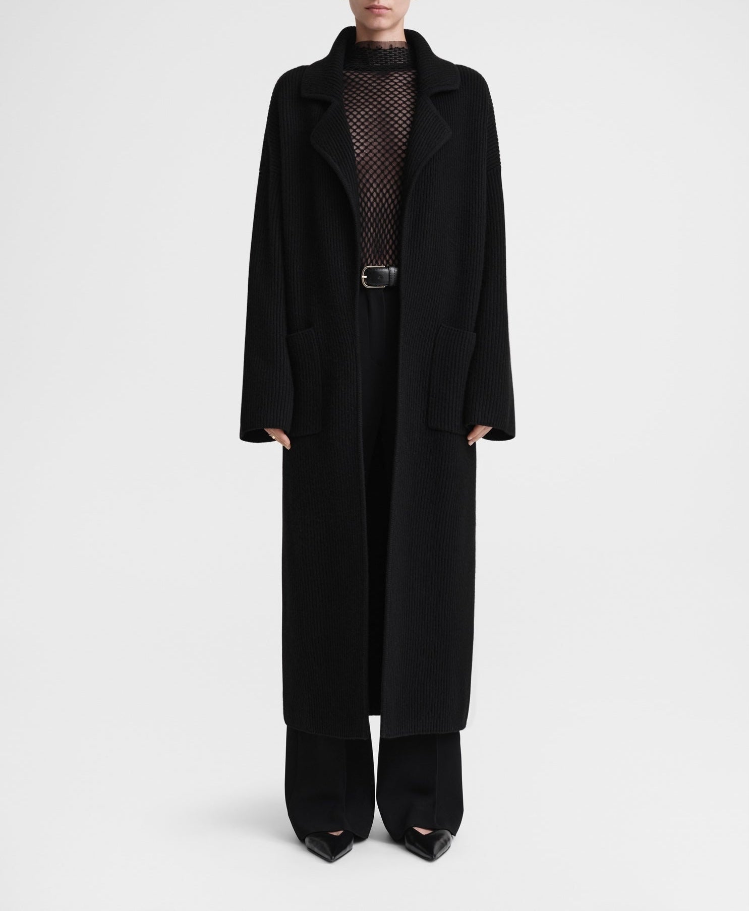 Cozy TOTÊME outerwear piece blurring the lines between a cardigan and a coat. It's made from a heavyweight, fisherman-ribbed wool blend with an open front framed with notched lapels and patch pockets.