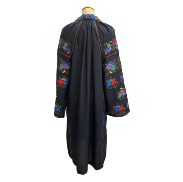 Vita Kin Embroidered Linen Maxi Dress Floral Folk Embroidery